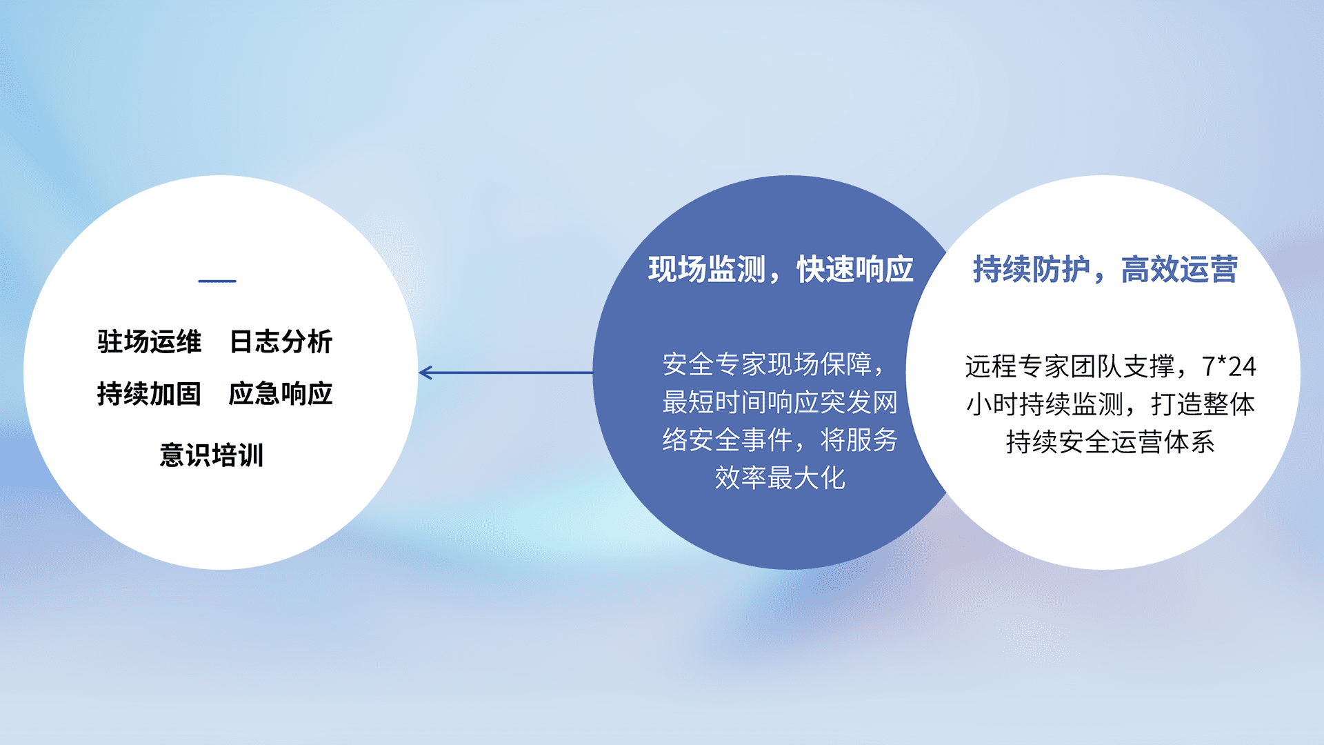 7X24小时持续监测安全事件,保持安全策略有效性,降低资产脆弱性风险,,,精准拦截黑客攻击,,减少被黑客利用的机会,,第一时间遏制,,,,降低损失。。。